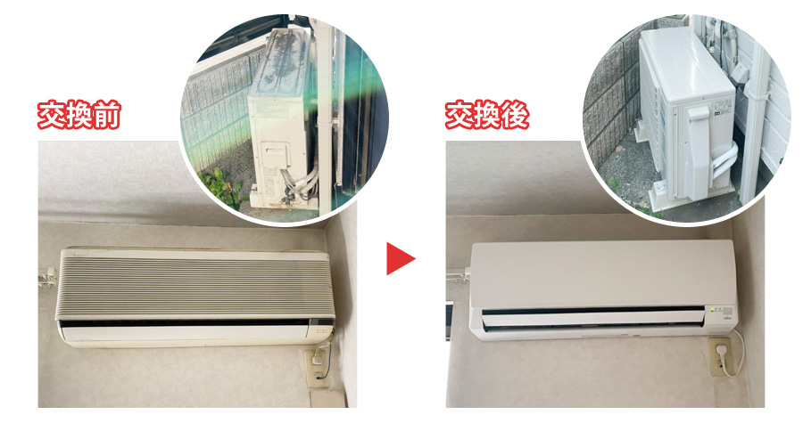 >エアコン修理、交換、新規設置工事の施工事例はこちら<