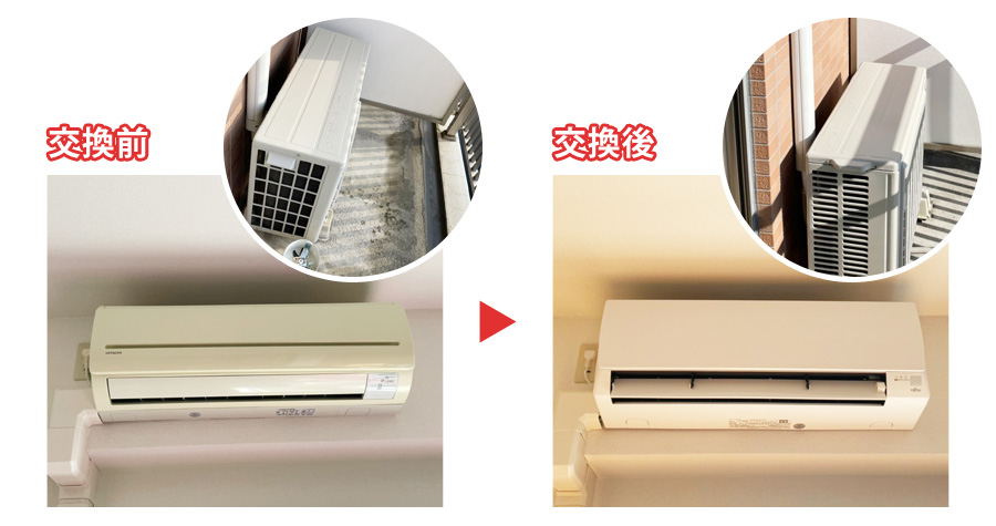>エアコン修理、交換、新規設置工事の施工事例はこちら<