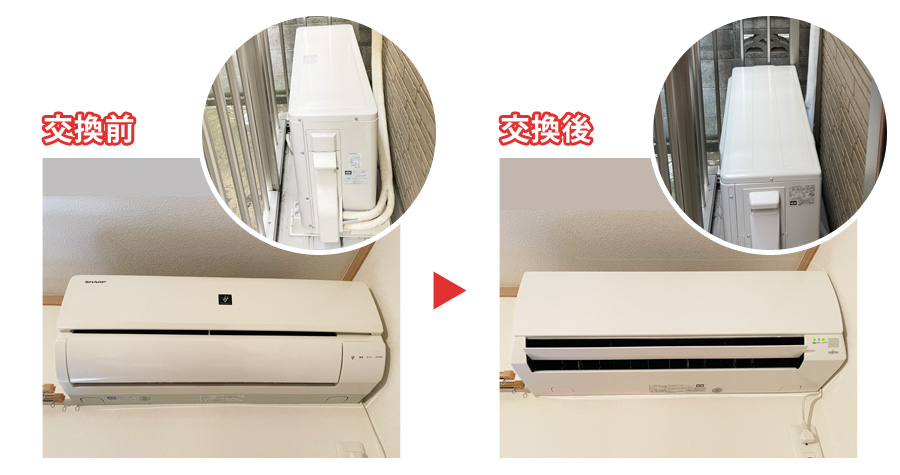 >エアコン修理、交換、新規設置工事の施工事例はこちら<